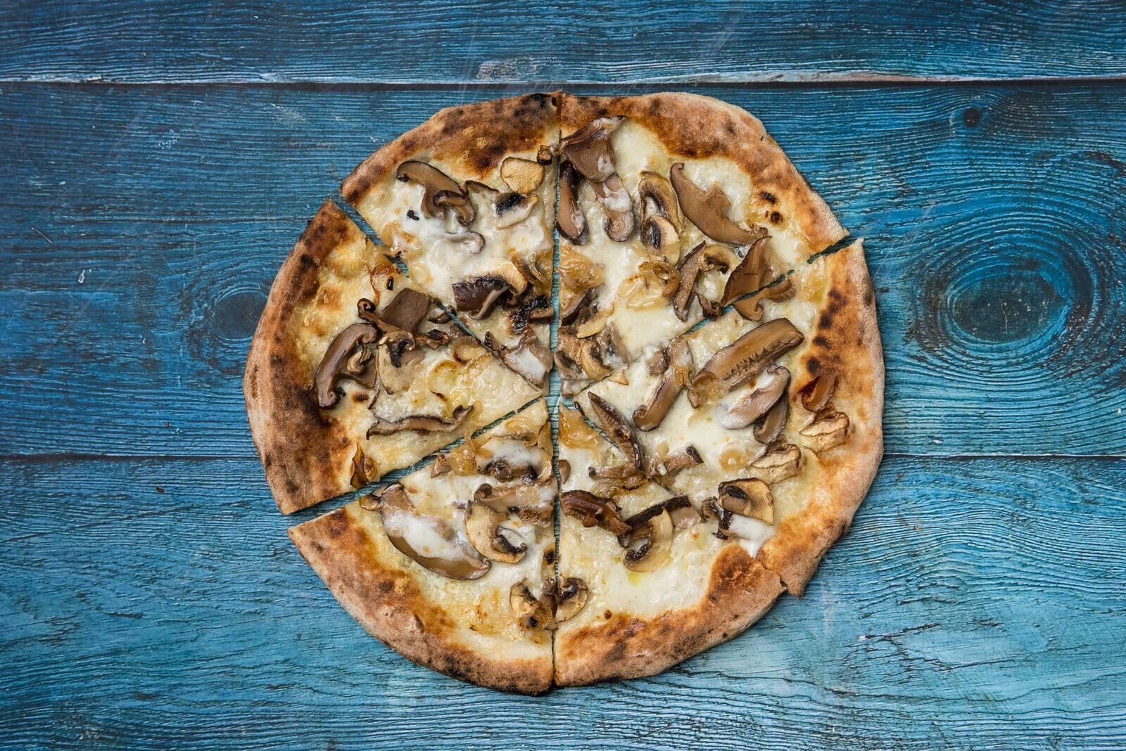 مجموعة متنوعة من أصناف البيتزا، بما في ذلك الخيارات الكلاسيكية مثل: المارغريتا، وديافولا النباتية، ودجاج جيرك، واللحم المقدد مع الفطر، ونقانق تشوريزو، وبطاطس بيري بيري المقلية، وشرائح الخبز بالثوم والزبدة.