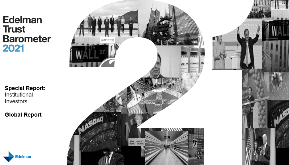 نشرت "إيدلمان" أكبر شركة في العالم للعلاقات العامة والاتصال الاستراتيجي اليوم، إصداراً خاصاً من النسخة الخامسة من تقرير "مؤشر إيدلمان للثقة"، والذي يسلط الضوء على توجهات وأوضاع "المستثمرين المؤسسيين". كما يرصد التقرير التوجهات الأساسية التي تشكل معايير الاستثمار، ويحدد كيف يمكن للمؤسسات في منطقة الشرق الأوسط وحول العالم، بناء الثقة مع مجتمعات الاستثمار.