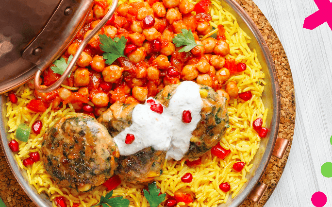 - كريمي كاجو فيج Creamy Cashew Veg with Spicy Rice، وهو خليط من الكاجو الكريمي والخضروات مع الأرز الحار.