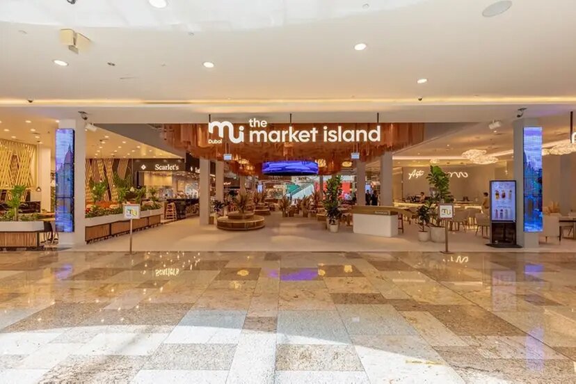 تتسع ماركت آيلاند، التي تمتد على مساحة 70 ألف متر مربع في موقع استراتيجي في الجهة الشمالية من الطابق الأرضي، لنحو 3,500 مقعد، وتحتضن أكثر من 50 منفذاً ومطعماً، تقدم مأكولات وأطباق عالمية متنوعة لعلامات مشهورة عالمياً، بما في ذلك مطاعم تفتح أبوابها للمرة الأولى في دبي مثل: