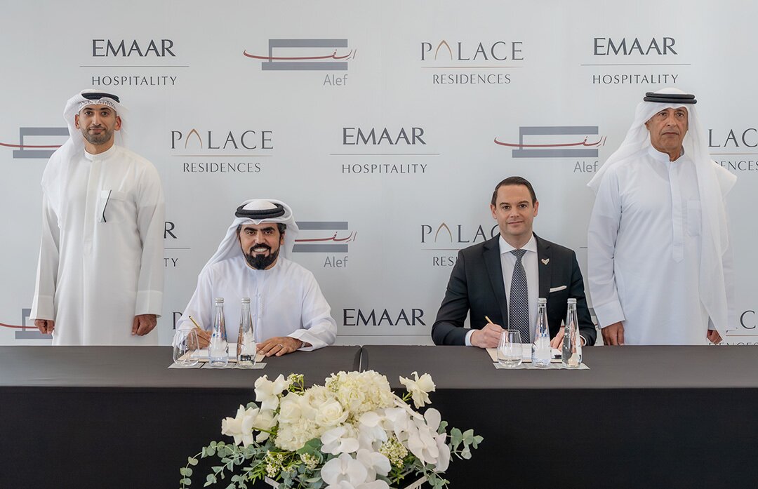 تم توقيع الاتفاقية بين رائد كاجور النعيمي، الرئيس التنفيذي لمجموعة ألف، ونيكولا بيلاتون، رئيس قسم الضيافة في مجموعة إعمار للضيافة، وبحضور أحمد المطروشي، المدير التنفيذي لشركة إعمار العقارية وعبدلله الحريمل، عضو مجلس إدارة مجموعة ألف، بما يُعد خطوة مهمة لترسيخ مكانة الشارقة كوجهة رائدة للمشاريع السكنية المتكاملة ونمط الحياة العصري.