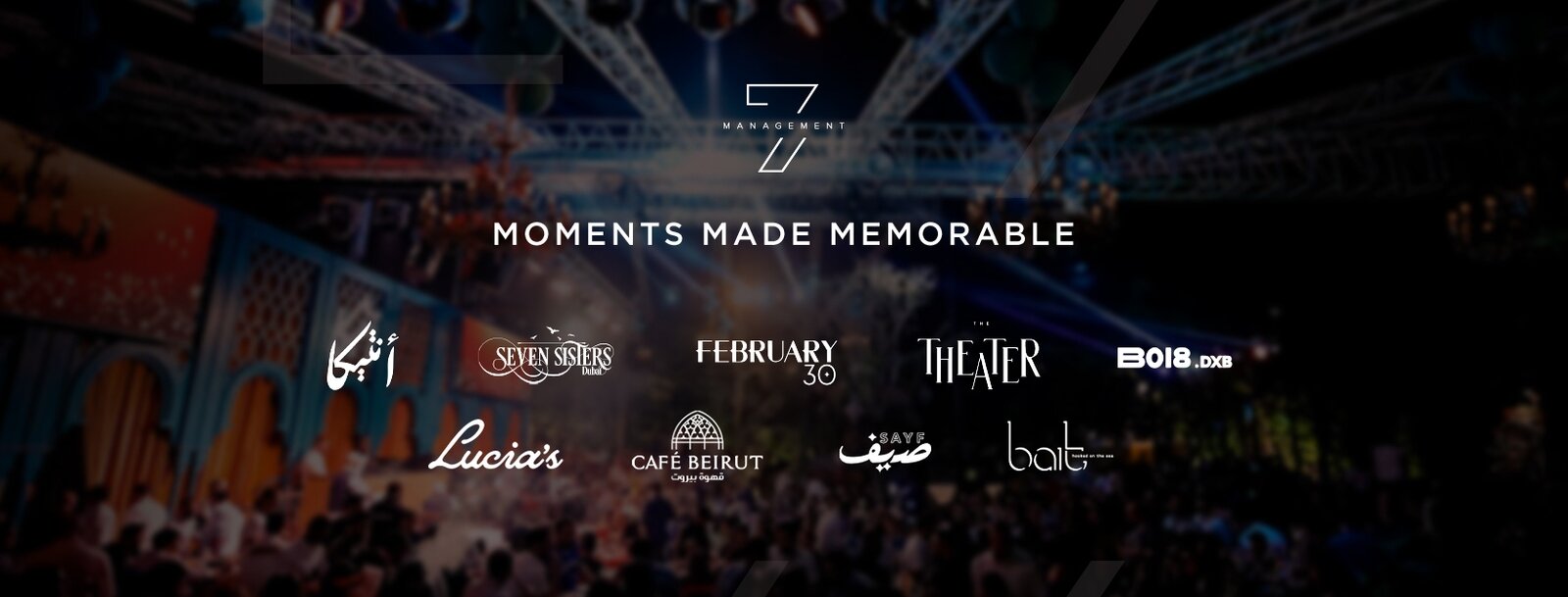 بعد سنوات من العمل لإتقان المعادلة المثالية بين الطعام والترفيه، رسّخت شركة "7 مانجمنت" اسمها بين الشركات الرائدة في مجال إدارة المطاعم والنوادي في بيروت ودبي. تَعِد الشركة ضيوفها بتجارب تنبض بالسحر والتشويق، ويكمن سحرها في الدمج بين الطابعَين الكلاسيكي والحديث، وبين الموسيقا الصاخبة والأجواء الهادئة.