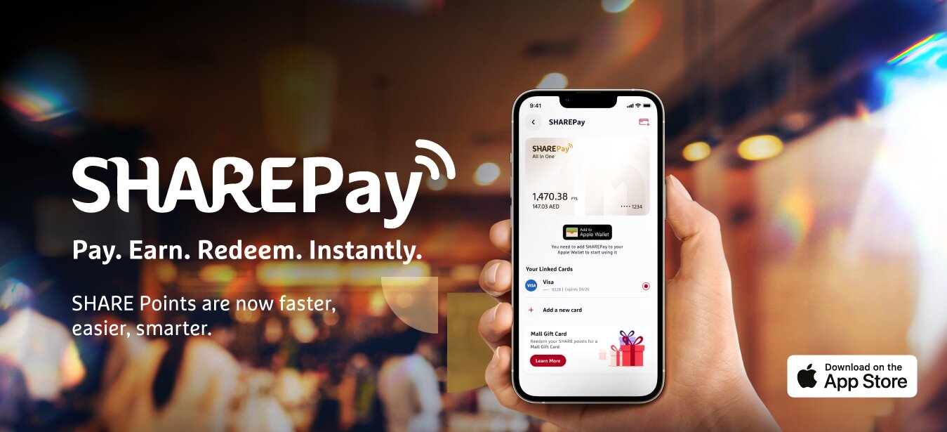 وتعدّ SHAREPay أول محفظة رقميّة من نوعها في منطقة الشرق الأوسط وشمال أفريقيا، حيث ستمكن عملاء برنامج SHARE من ربط 10 بطاقات ائتمان أو سحب كحد أقصى ببطاقة رقمية واحدة، ممّا سيتيح لهم اكتساب واستخدام نقاط SHARE مباشرة في جميع أنحاء منظومة الأعمال التابعة لـ"ماجد الفطيم". ويمكن للعملاء الآن سداد قيمة مشترياتهم إمّا من خلال بطاقاتهم المرتبطة بـSHAREPay أو باستخدام نقاط SHARE الخاصة بهم عند جميع منافذ البيع التابعة للشركة بطريقة سهلة وسريعة وميسّرة.