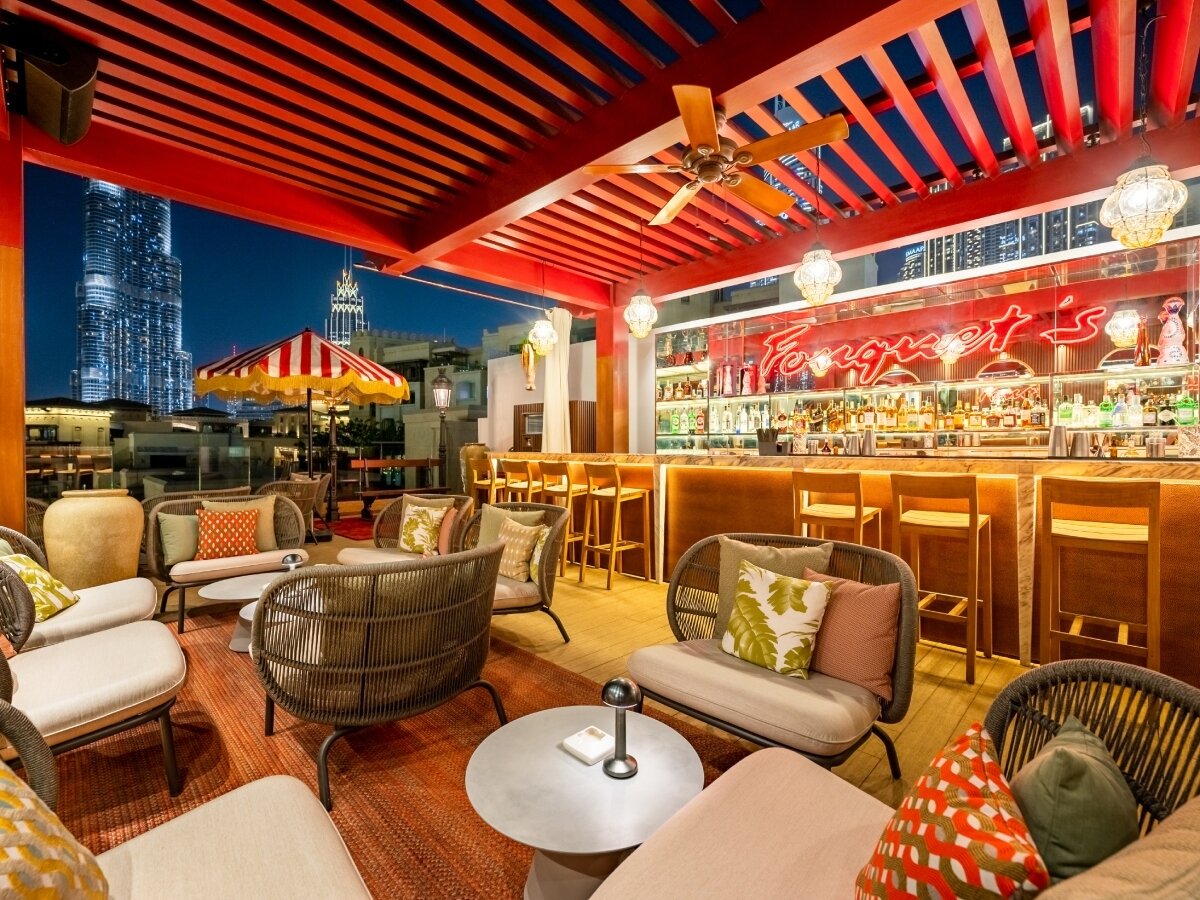 أمّا التراس في الطابق العلوي فيشكلّ وجهة رائعة للاسترخاء وتناول المشروبات وسط إطلالات خلابة على برج خليفة وأفق مدينة دبي ويستضيف هذا التراس سهرات حافلة بالتسلية والمرح والكوكتيلات اللذيذة مع أروع الأجواء الموسيقية.